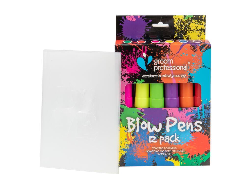 Get ready to unleash your creativity - with these safe and speedy blow pens, you can add a burst of temporary color to your furry best friend's hair! Just aim and blow for unique designs or a pop of color. And for extra precision, use the included stencils. The colors dry quickly, seal themselves, and can be easily washed out with water or shampoo. Plus, they're totally pet-friendly and non-toxic. This pack comes with 8 plastic stencils and 12 fabulous shades - including dark green, light green, red, orange, dark pink, light pink, yellow, black, brown, purple, dark blue, and light blue. So go ahead and have some fun with these creative blow pens.